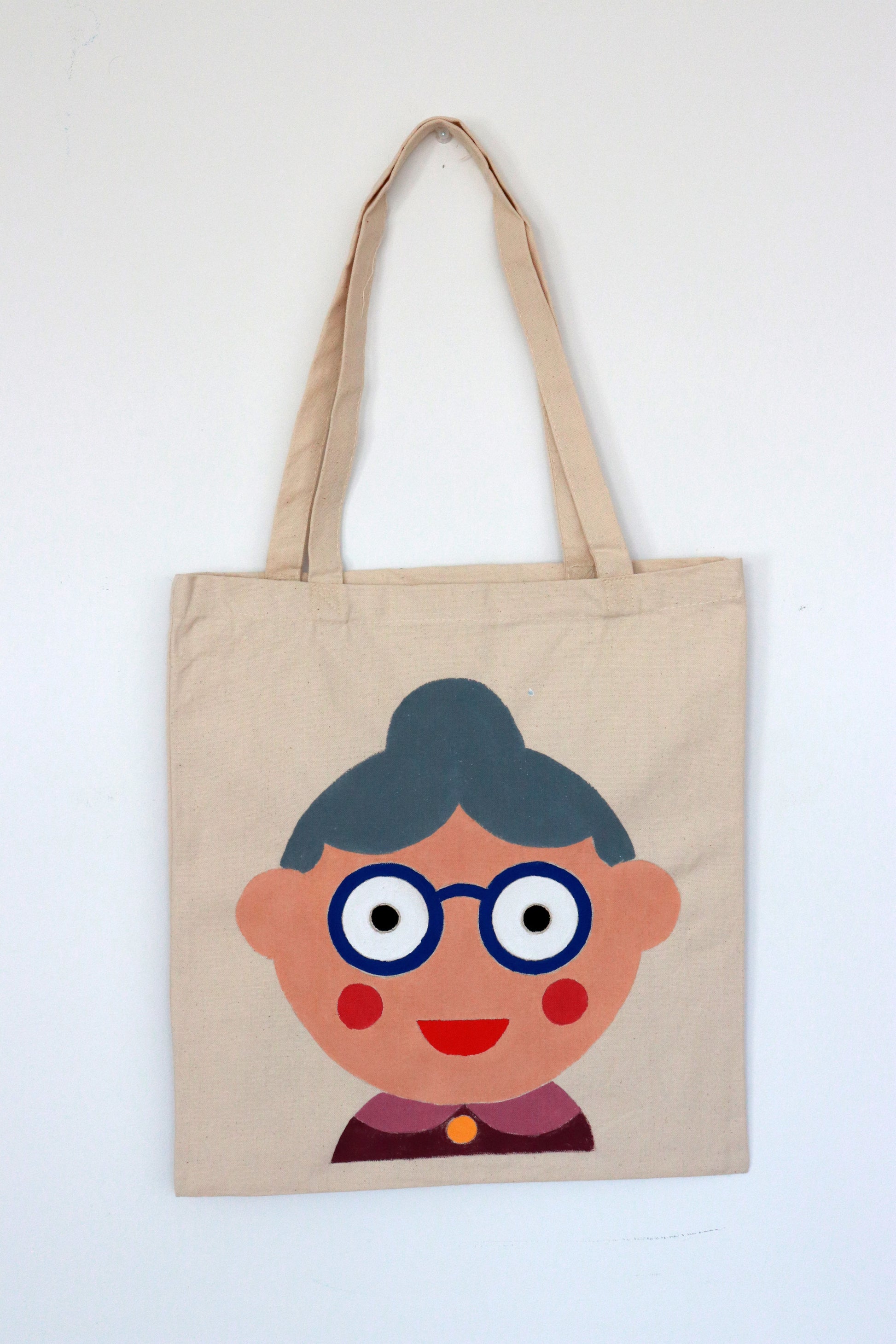 Tote Art son bolsas de algodón ecológico de 280 g/m2 pintadas a mano. Las medidas son 42 cm de alto por 38 cm de ancho, y las asas son de 65 cm. Cada bolsa es una obra de arte única. Preferiblemente no lavar.