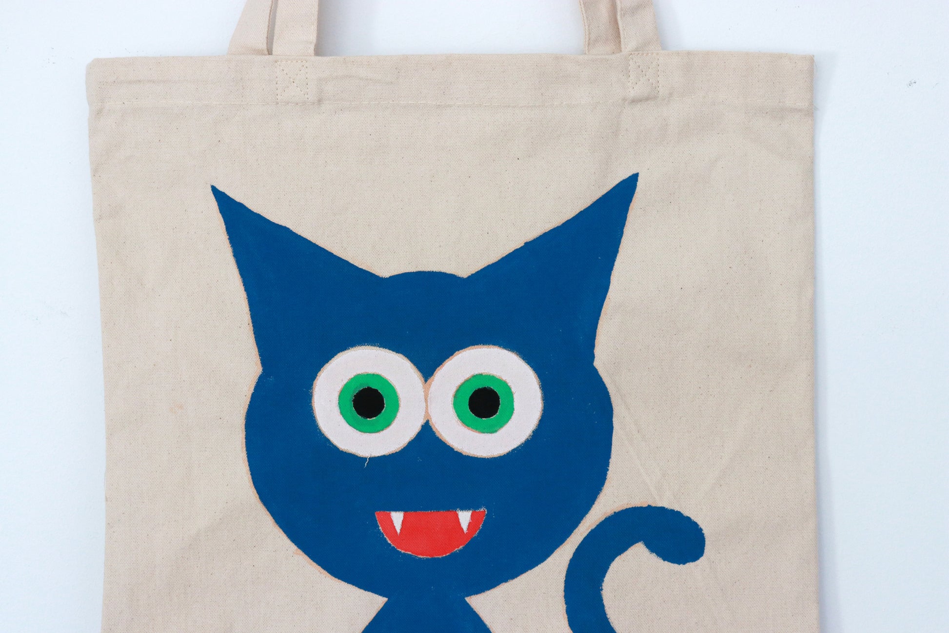 Tote Art son bolsas de algodón ecológico de 280 g/m2 pintadas a mano. Las medidas son 42 cm de alto por 38 cm de ancho, y las asas son de 65 cm. Cada bolsa es una obra de arte única. Preferiblemente no lavar.