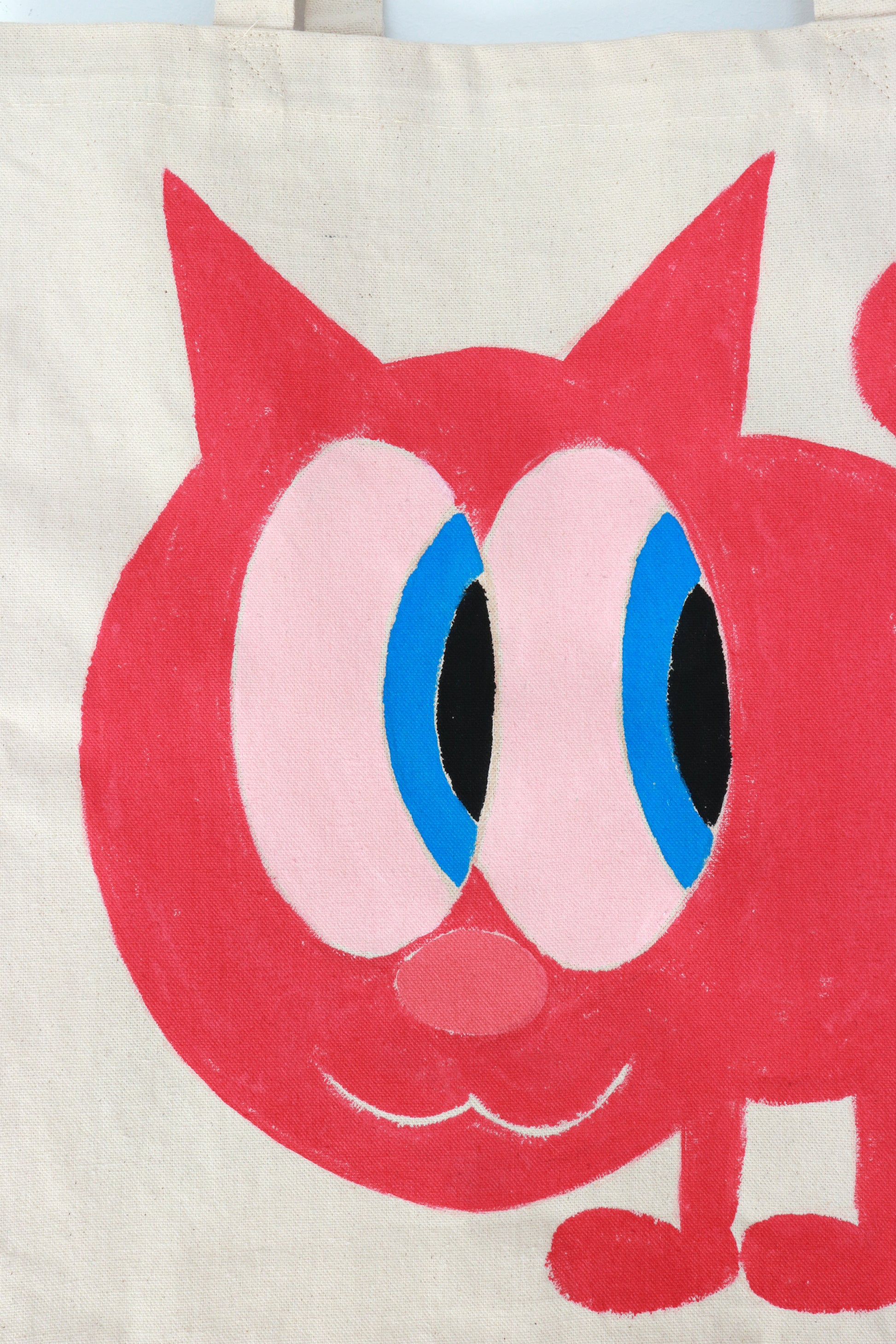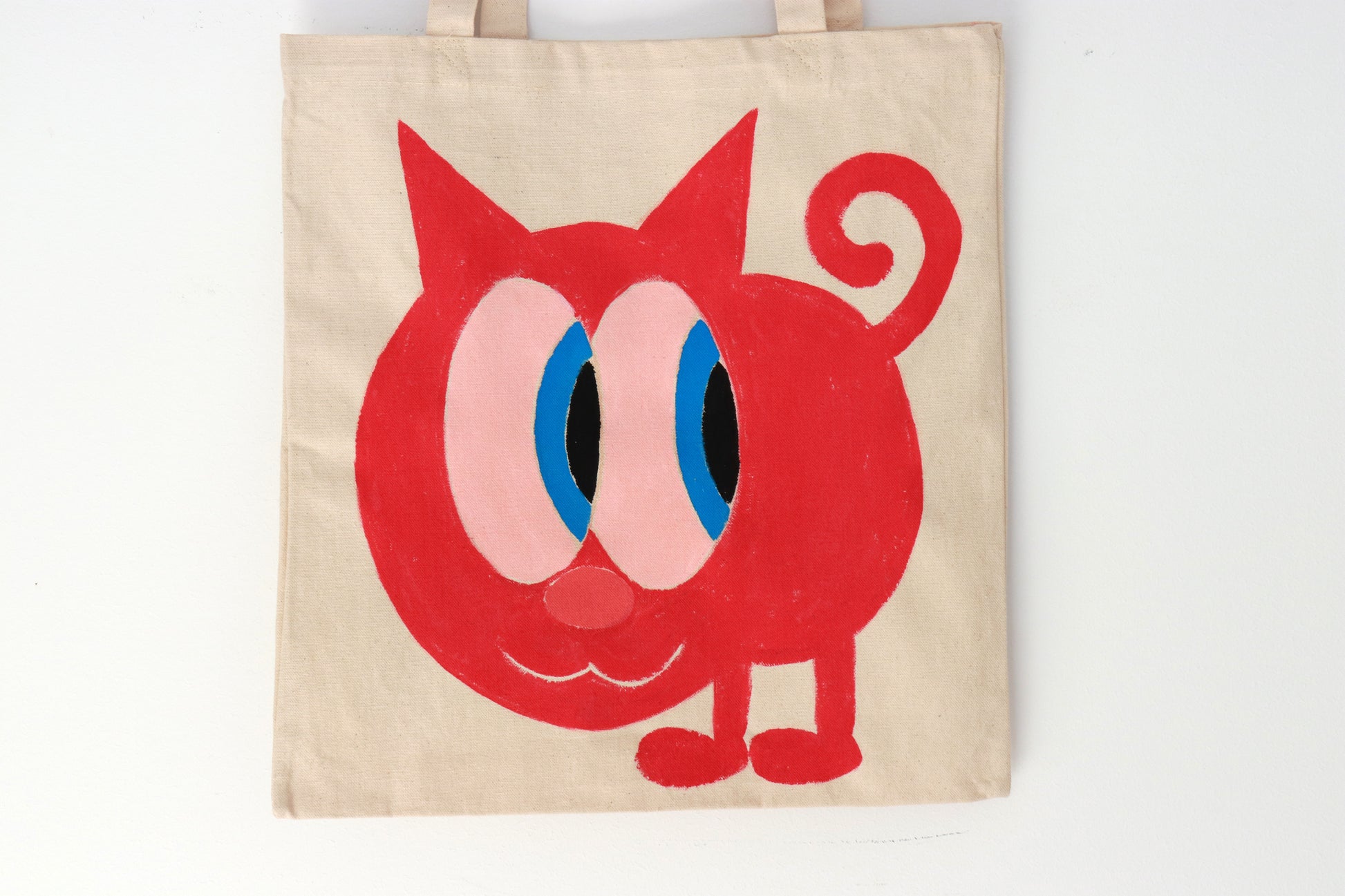 Tote Art son bolsas de algodón ecológico de 280 g/m2 pintadas a mano. Las medidas son 42 cm de alto por 38 cm de ancho, y las asas son de 65 cm. Cada bolsa es una obra de arte única. Preferiblemente no lavar.