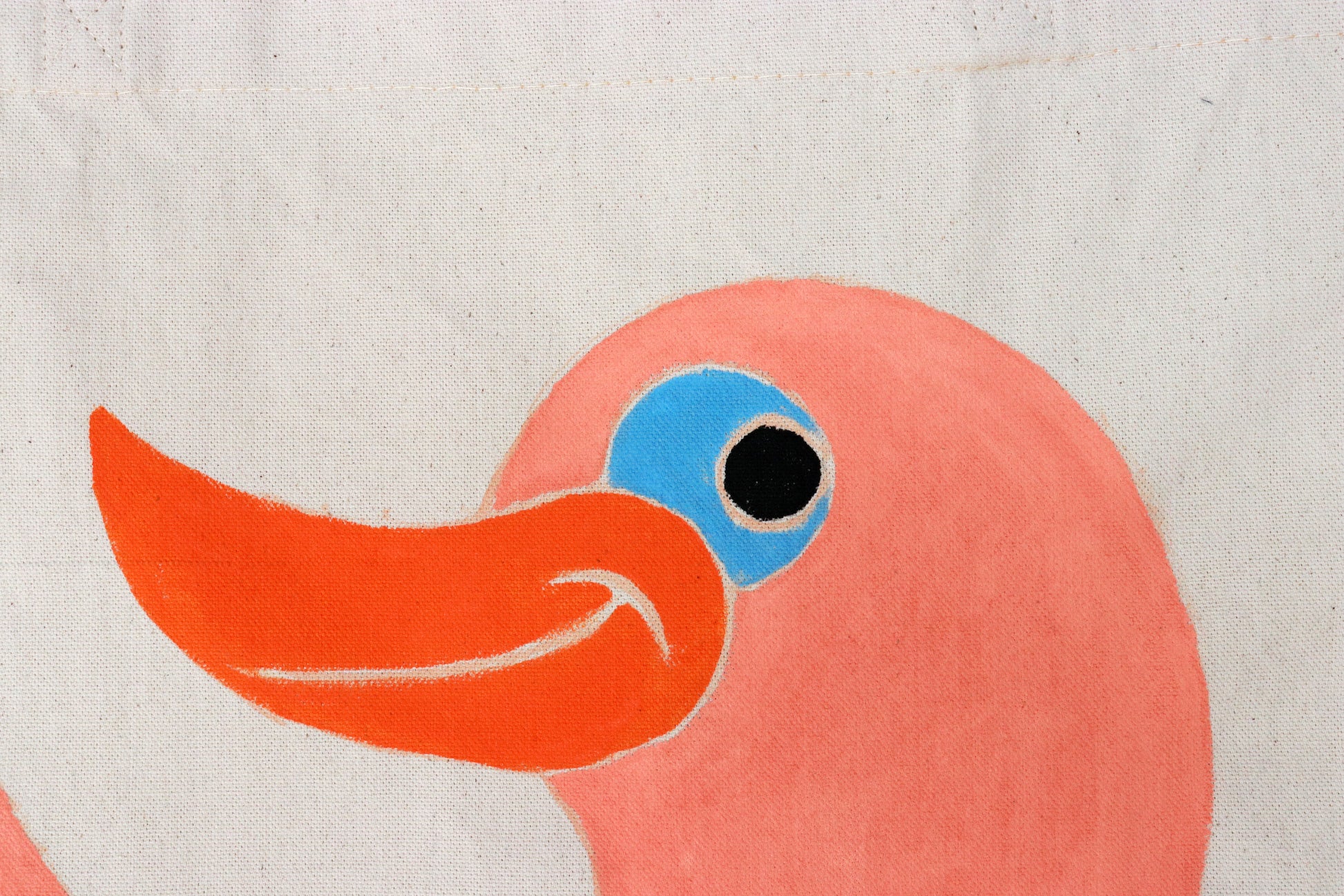 Tote Art son bolsas de algodón ecológico de 280 g/m2 pintadas a mano. Las medidas son 42 cm de alto por 38 cm de ancho, y las asas son de 65 cm. Cada bolsa es una obra de arte única. Preferiblemente no lavar.