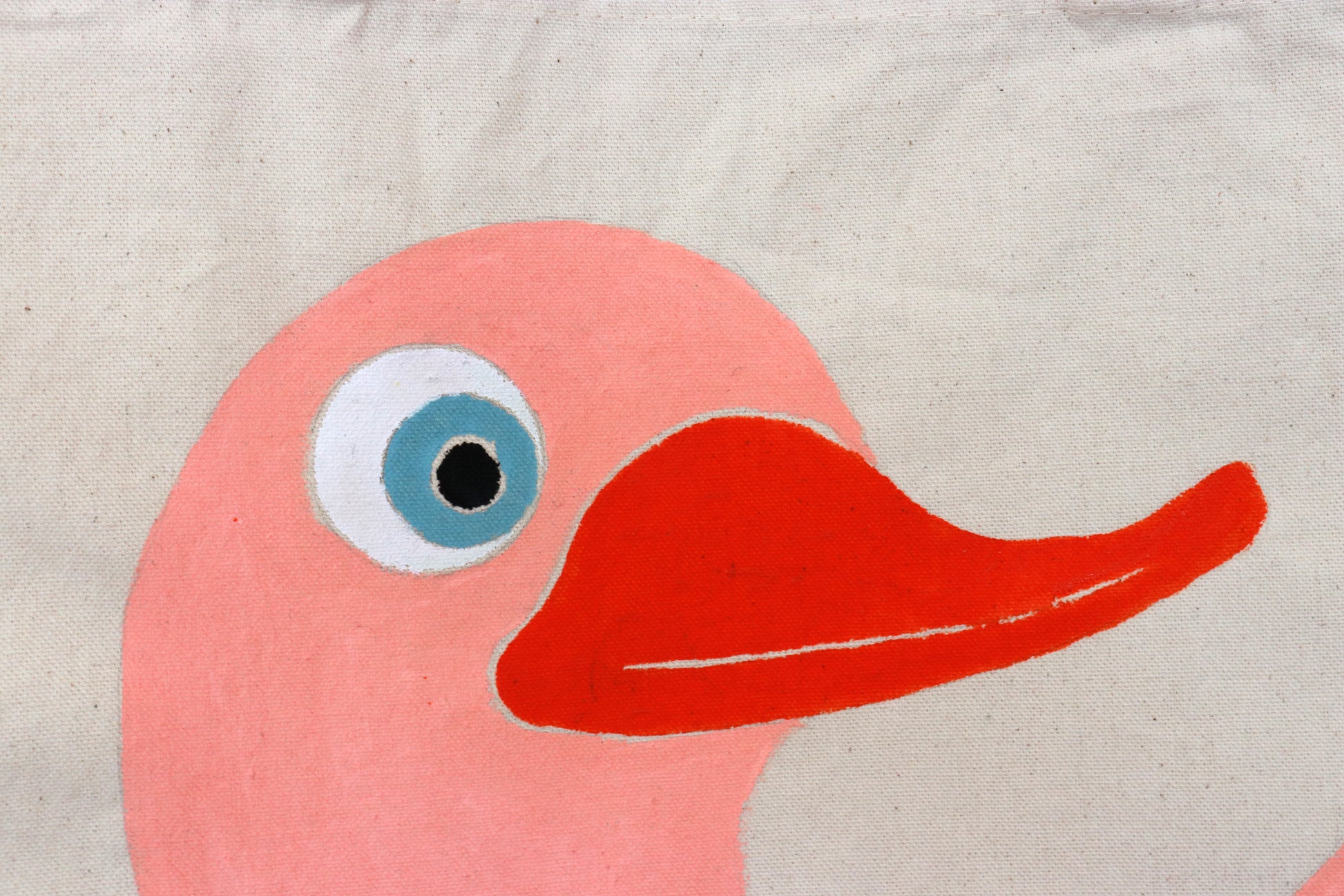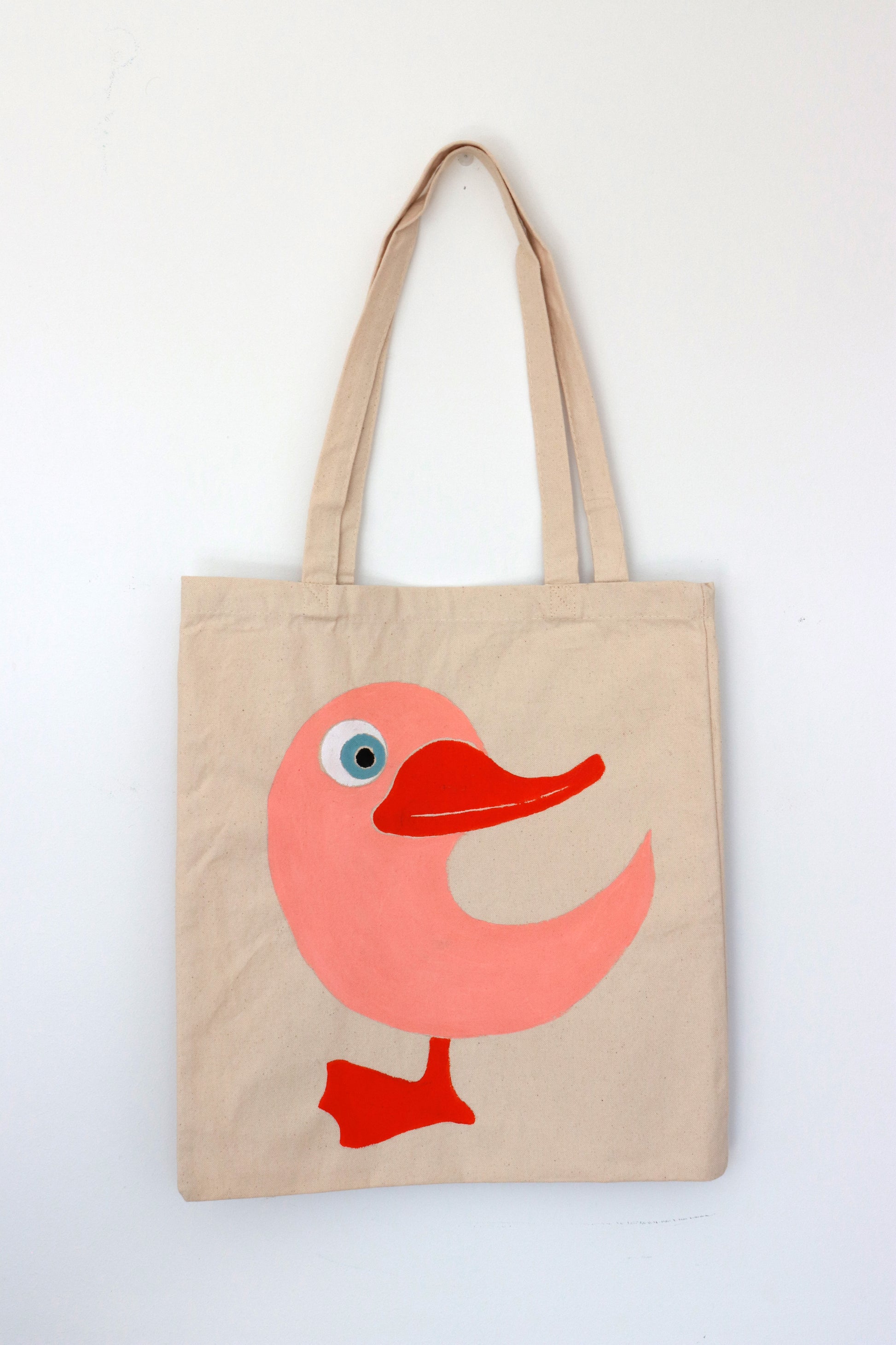 Tote Art son bolsas de algodón ecológico de 280 g/m2 pintadas a mano. Las medidas son 42 cm de alto por 38 cm de ancho, y las asas son de 65 cm. Cada bolsa es una obra de arte única. Preferiblemente no lavar.